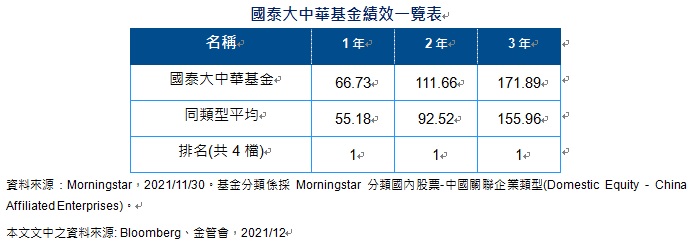 資料來源:Morningstar,2021/11/30。基金分類係採Morningstar分類國內股票-中國關聯企業類型(Domestic Equity - China Affiliated Enterprises)。