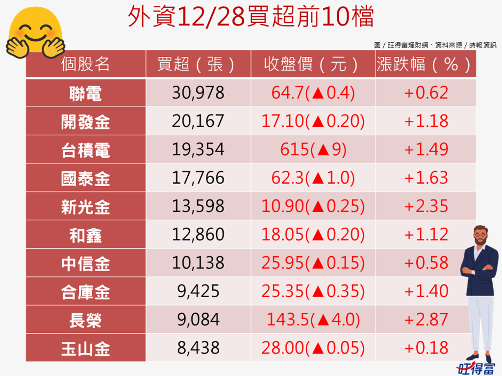 值得一提的是,外資28日狂敲台股215.54億元,已連續6個交易日偏多加碼,累計期間共買超716.08億元,回補力道強勁,買超金額前五大個股為台積電、聯電、長榮、國泰金及智原。