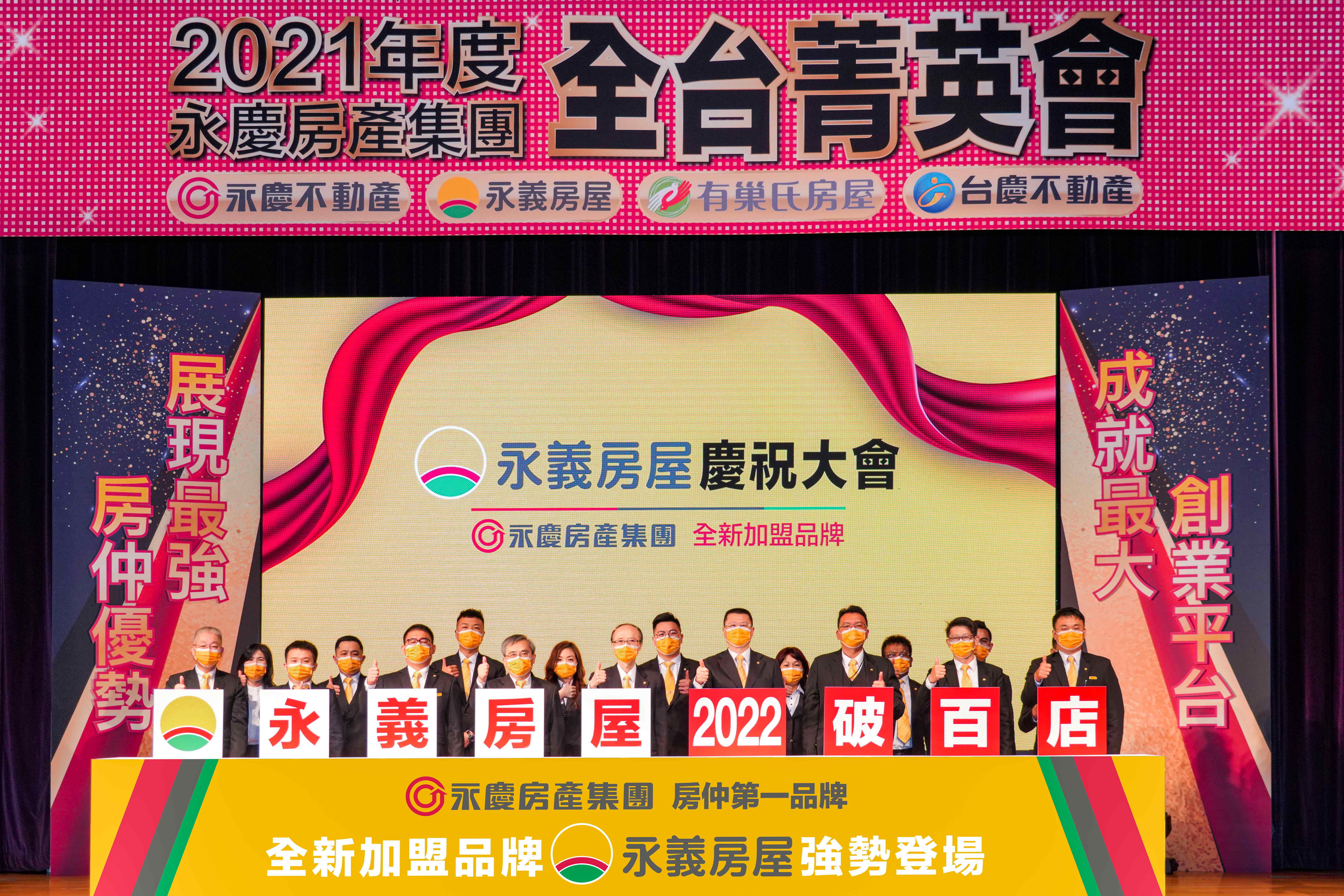 永慶房產集團1月6日邀請2021年已開店、2022年即將開店的永義房屋加盟店店東,還有永慶不動產、有巢氏房屋和台慶不動產全台經管會會長、副會長,一同見證;並邀請Next光影舞團以科技感十足的表演,演繹永義房屋「人機合體」新時代房仲定位,更宣告「永義房屋2022年目標開出100店」。