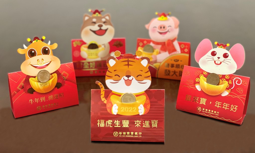 華南銀行表示近年來所發行的生肖系列發財金非常搶手,已經有客戶成為忠實粉絲在蒐集,想要組成一套12生肖開運發財金,華南銀行今年更精心推出虎年發財金御守,以御守造型的外包裝設計,守護客戶的財富,讓客戶財運亨通,立體的虎年吉祥物雙手捧著閃閃發亮的發財金象徵「虎你發大財」,擺在家裡、辦公室或是店家的櫃檯,都相當喜氣、搶眼。