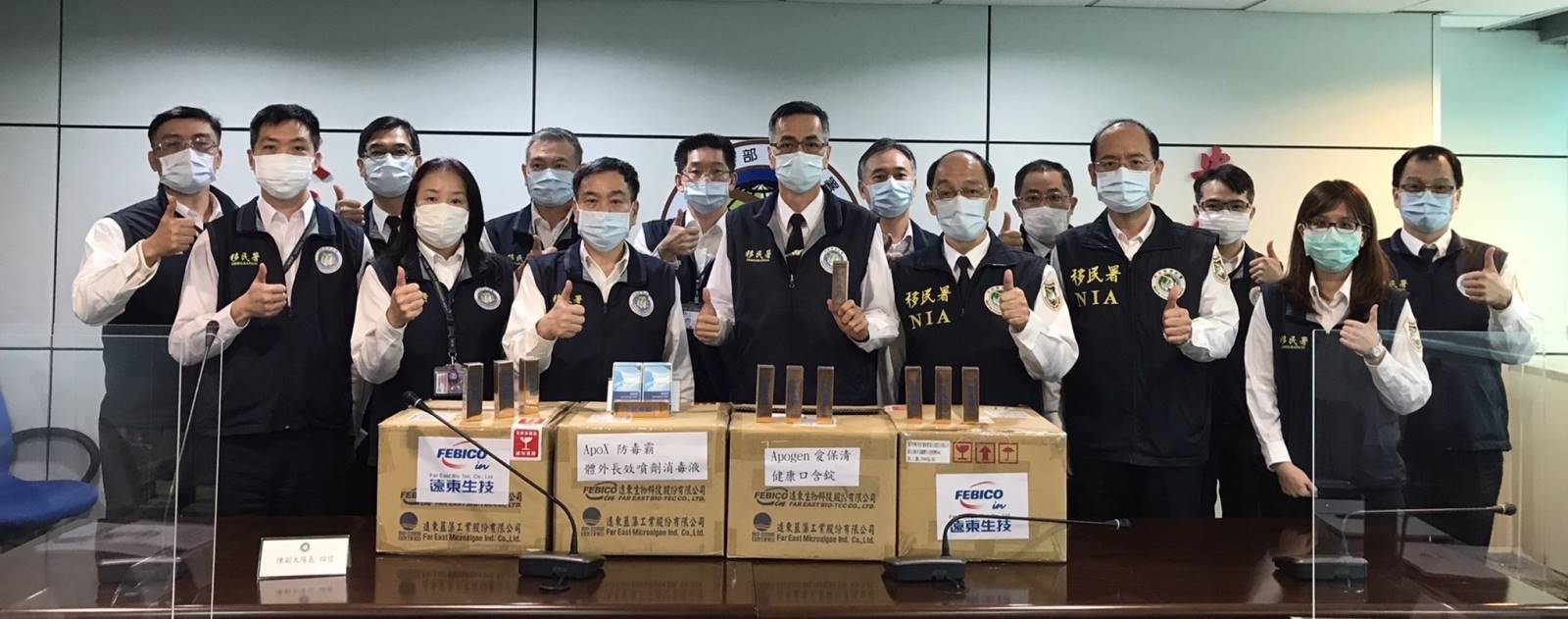 春節返台人潮高峰期間,入境篩檢病毒陽性率高達近10%,為了降低機場、港口第一線執勤移民官的染疫風險,也保護國內民眾。遠東生技熱心公益特別主動連繫移民署,並獲高度認可,於上週火速捐贈「國境事務大隊」ApoX防毒霸體外長效噴劑1,000瓶及Apogen愛保清健康口含錠1,000盒,市價將近百萬,就是為了讓第一線執勤移民官補充營養,以提升保護力,幫助防堵疫情擴散。