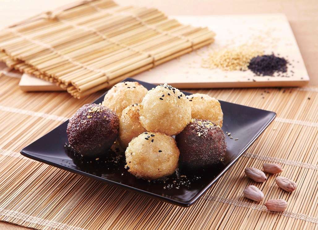 口味上除經典的芝麻、花生外,還有大眾喜愛的棗泥、豆沙、桂花口味,外皮也有分傳統糯米與健康紫米兩種,讓大家選擇更多元!