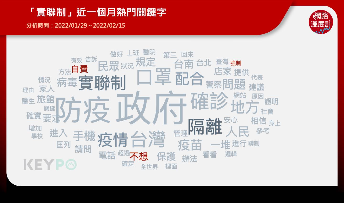 自1月29日起網友自費入住防疫旅館的消息陸續曝光後,網路上掀起「我沒有42000,我不掃實聯制」、「你現在還敢掃實聯制嗎」等討論串,根據《KEYPO大數據關鍵引擎》熱門關鍵字來看,許多網友不滿乖乖執行實聯制,卻得自付高額費用,「匡列隔離也是你政府,民眾都配合了結果要自費?」、「平常都乖乖掃實聯制,突然不想掃了」、「以前掃很認真的說,自從看到那則新聞真的嚇到」、「光隔離費+薪水就要10萬起跳了,誰還敢掃實聯啊」、「「最可怕的是住防疫旅館,結果有機會被染疫」,綜合網友討論,認為掃了有可能因此破財,且就算入住防疫旅館也可能會確診,大幅下降落實實聯制的意願。