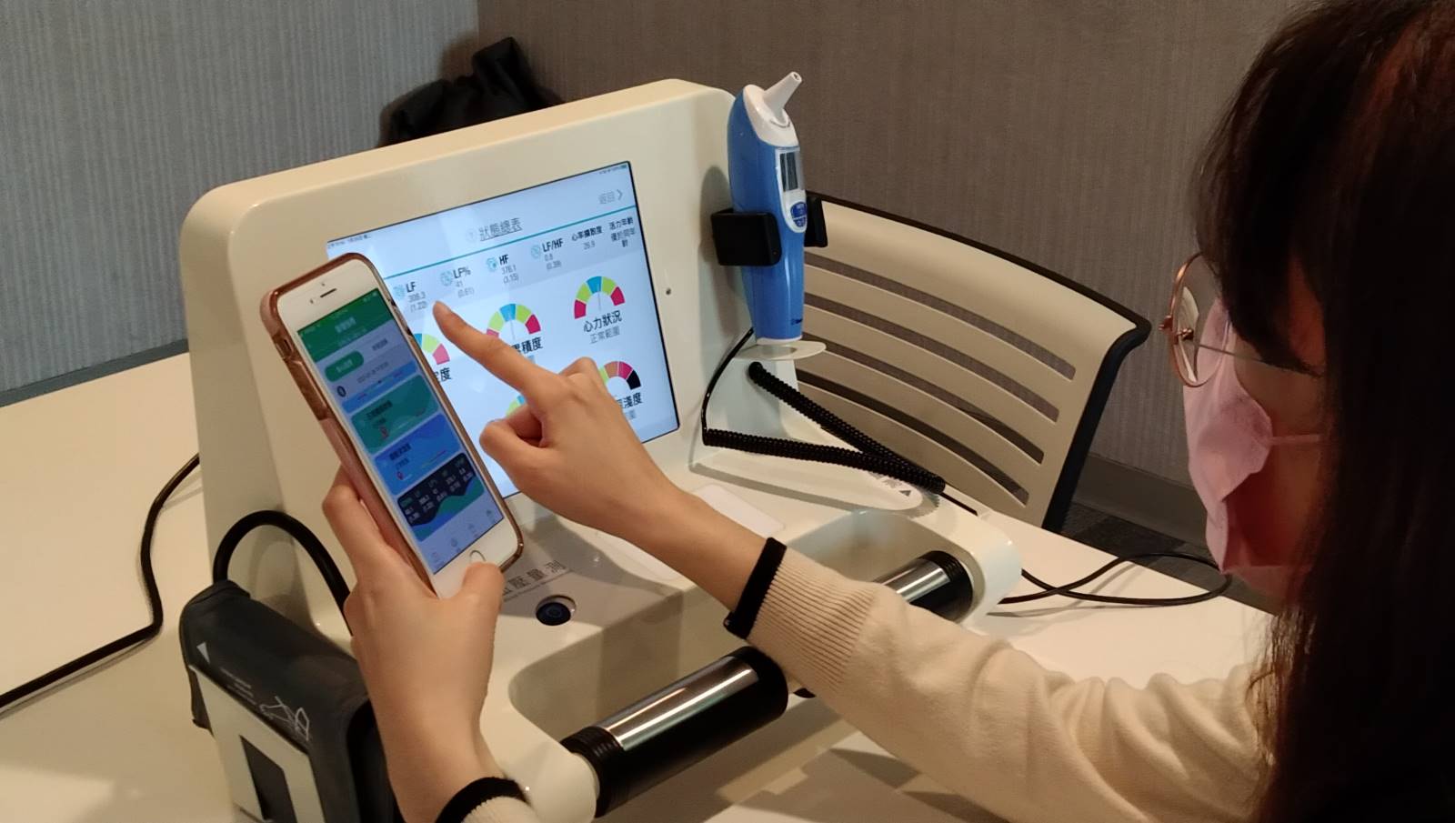 另外,中保科也積極協助企業布建公眾健康站,在公司內部設立公眾健康站,讓員工可以隨時進行健康指數之量測,包括血壓、HRV(心律變異分析)、酒測、額耳溫、體脂和血氧等,所測之數值可以同步上傳至個人健康檔案,來為自己的健康狀態進行追蹤。