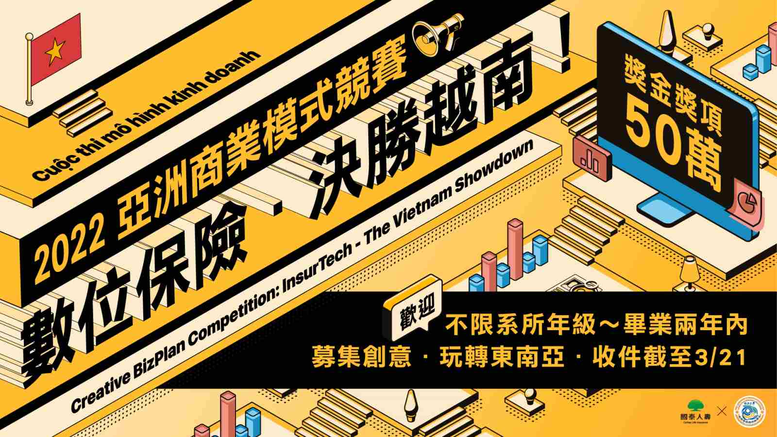 東南亞數位經濟發展力道不容小覷,最新報告指出,預計2025年東南亞蓬勃的網路經濟將可翻倍成長至3,630億美元[1],而其中越南由於疫苗覆蓋率提高以及勞動市場逐漸解封,有望在今年實現6%以上的經濟成長率[2]。國泰金控以多元金融服務與商品在台灣已立足一甲子,在金融創新及數位轉型累積了豐碩成果,近幾年也持續延伸觸角,將其創新轉型能量推向新南向重點國家。為助攻東南亞發展,國泰金控與國泰人壽攜手國立政治大學,推出「2022亞洲商業模式競賽:數位保險,決勝越南」,提供總價值超過50萬元的獎項,號召有志青年針對越南市場提出數位保險商業模式,一同挾帶創新能量前進越南!