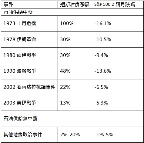 表:歷史地緣政治事件若不影響石油供給,對市場影響有限