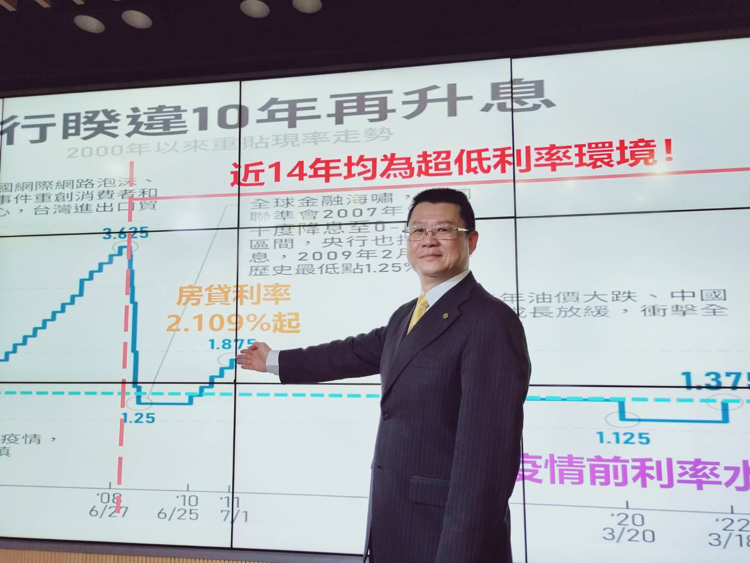 他說,根據調查結果發現,73%消費者認為2022年會升息,並有81%認為升息時間點會落在今年第二、三季之間,至於升息幅度,77%消費者認為2022年會升息1碼內。