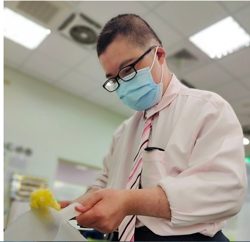 「我是來上班啊,上班要有上班的模樣!」小傑,天天穿著正式服裝來小作所,襯衫、西裝褲、領帶,缺一不可,對他而言,小作所的意義無比重要。為了避免遲到,他搭乘第一班公車,經過轉車,提早半小時抵達小作所。即使一早舟車勞頓,他的臉上總是掛著笑容,開心期待一天的開始。小傑珍惜在小作所的每一分鐘,認真工作,不容馬虎,專注於每一個步驟,把事情做到最好。
