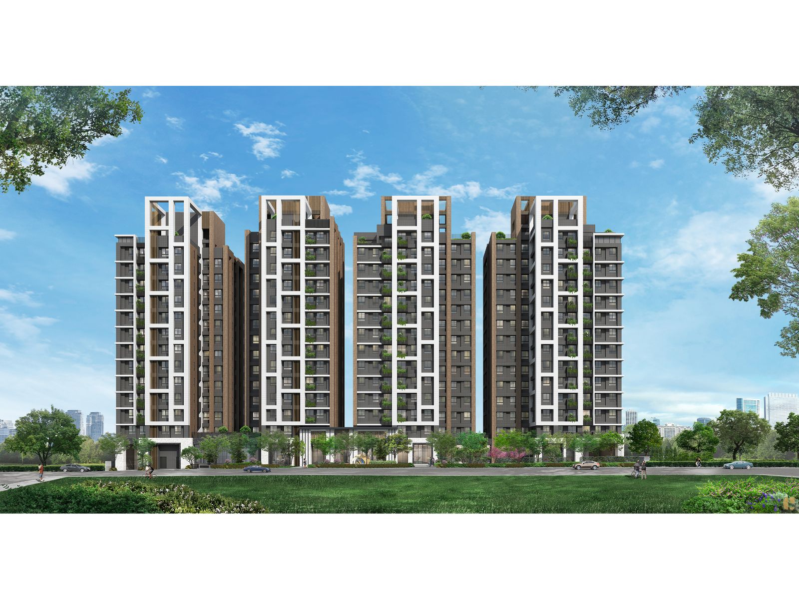 ▲豐原匯採4棟設計,不同房型則分棟,各自生活圈獨立。