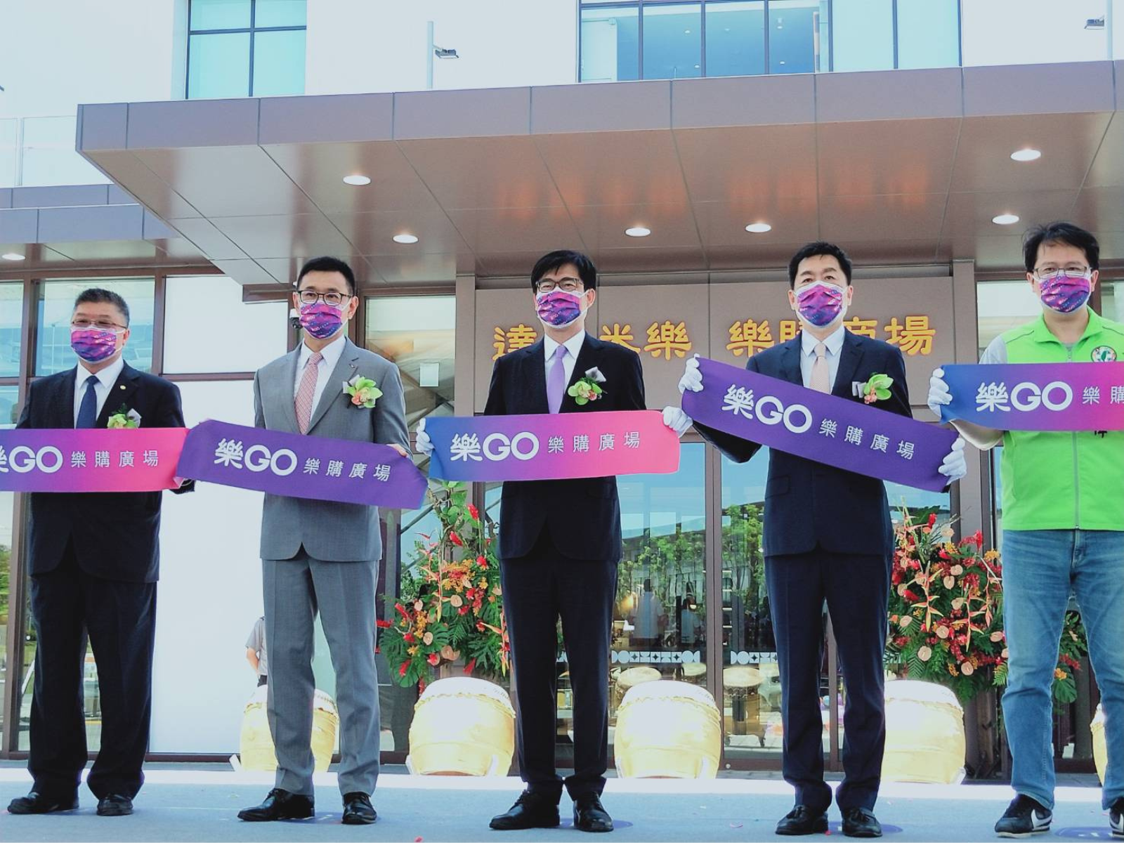 上圖圖說:高雄市長陳其邁(圖中)與達麗建設董事長謝志長(左2)共同為「樂購廣場」剪菜。