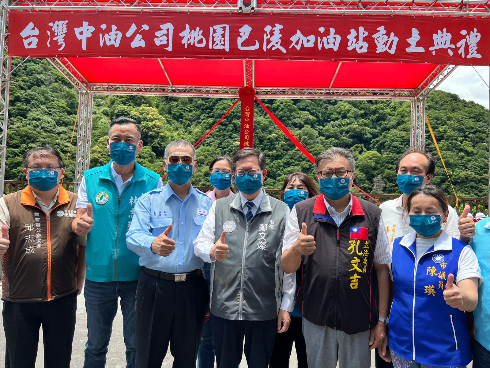 1日的動土典禮包括台灣中油董事長李順欽(首排左3)、桃園市市長鄭文燦(首排左4)、立委孔文吉、桃園市政府經濟發展局長郭裕信及多名當地人士共同參與,對巴陵加油站歷經多年規劃、環境影響評估及施工,即將展開興建工程,為偏遠居民提供用油服務都予以肯定。