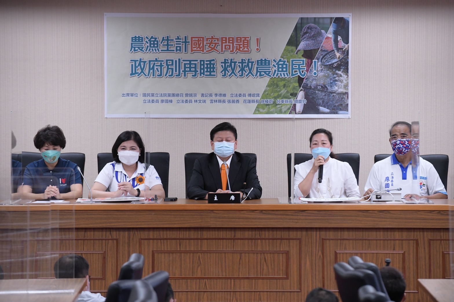 立委傅崐萁此次邀集縣市首長與民意代表共同為受災農漁民發聲,現場國民黨立法院黨團總召曾銘宗、書記長李德維、立法委員廖國棟、立法委員林文瑞、雲林縣長張麗善、花蓮縣長徐榛蔚、台東縣長饒慶鈴站台齊聲力挺農漁民,要求中央政府農委會儘速著手提出實質性、具體性措施包括:包銷、認購、補貼、補助及收購等方案才能真正幫助農漁民,減少損失!