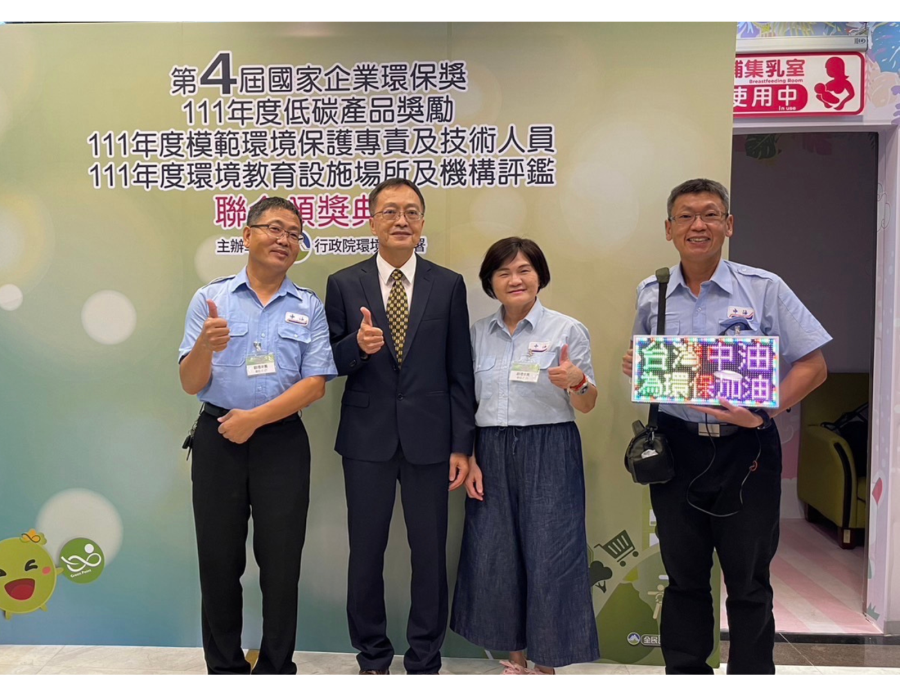 「國家企業環保獎」為國內企業最高環保榮譽獎項,台灣中油積極主動推動環保措施,率全國之先推動油氣回收系統以減少揮發性有機物逸散、建置地上儲槽洩漏預警系統、固定污染源自主檢測及實施管線明管化,將加油站空污減量列為重點。