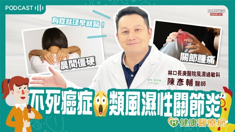 林口長庚醫院風濕過敏科陳彥輔醫師表示,類風濕性關節炎是一種自體免疫疾病,體內抗體會去攻擊破壞自己的關節組織,因此素有「關節破壞王」稱號。此疾病好發於中年女性,男女比為1:3,一般民眾對類風濕性關節炎最耳熟能詳的例子就是作家杏林子,她因罹患嚴重類風濕性關節炎,最後造成關節扭曲變形、握筆困難,甚至行動需要乘坐輪椅。不過由於目前臨床檢查及診斷技術相當進步,就醫初期通常能確認是否罹患類風濕性關節炎,只要民眾提高警覺,有症狀及早就醫,就不需過度恐慌。