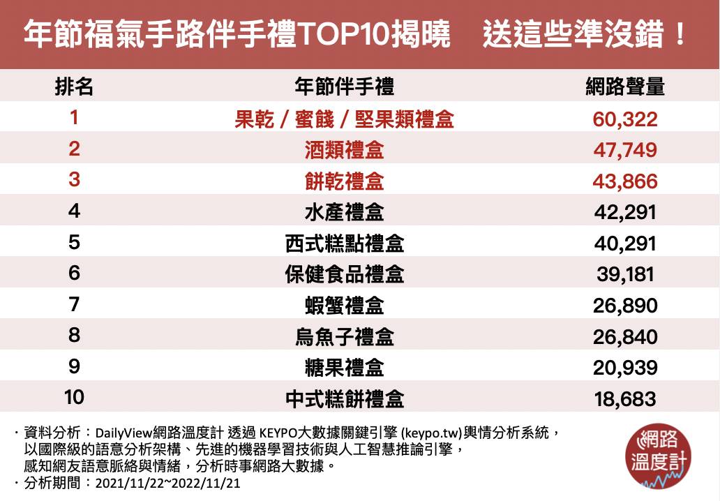 ,調查出了網路聲量最高的年節福氣禮盒Top 10,還在煩惱過年拜訪親友時要帶什麼嗎?照著這些清單送準沒錯!