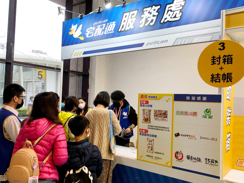 迎接微解封後的大型實體的「2023台北國際書展」活動,台灣宅配通於書展現場獨家提供宅配服務,書香宅配每件120元(附贈s95公分規格紙箱乙只)超值優惠價,下載HAPPY GO App並綁定發票載具、出示宅配通 App優惠券或宅配通LINE官方帳號優惠券等,加贈宅配通便條紙乙個,寄件只要110元(三種優惠擇一使用)。