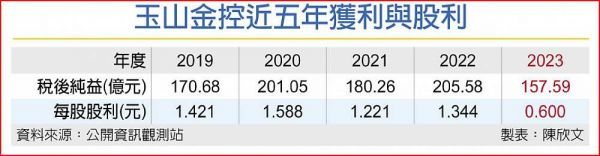 回顧玉山金過去股利配發方式,確實皆以盈餘分配的現金股利加上盈餘轉增資配股並進方式,去年每股分別配發0.67元現金與股票,合計股利1.34元;2021年現金、股票也分別配發0.61元,合計1.22元。今年則受到去年獲利較前年衰退23.3%的衝擊,股利發放水準創下近年新低水準。