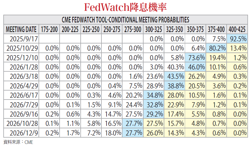 儘管歷來美股都有九月魔咒,但今年由於關稅干擾導致拉貨動能提前發酵,台、美股在第三季表現都異常亮眼,此多頭行情一直延續到九月初仍未有敗象,疲軟的非農數據更確立軋空行情的延續。