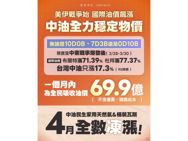 美伊戰爭爆發一個月內 國際油上漲超過七成 台灣中油吸收69.9億元