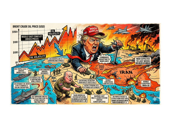 中東戰鼓擂動!英美三航艦大軍壓境,專家技術面示警:油價「雙鬼拍門」恐現中期頂部