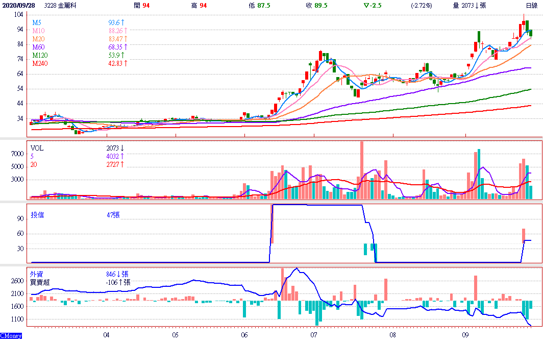 金麗科(3228)日線圖