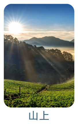 面對雄偉壯闊的山林,總給人一種回到自然的感覺。選擇山上的你,期望重回山林的懷抱中,找尋自己的目標,一步一腳印踏實地走在山坡上,每一個未來都始於腳下這一步,穩定地一步步向上爬。