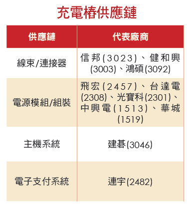充電樁是一個整合電源供應、資料通訊、物聯網的產品,光只有充電樁還不夠,充電站還包含電源管理、電力分配、儲能系統等,是一個微電網的概念,隱含的商機非常具想像空間,相關廠商如下: