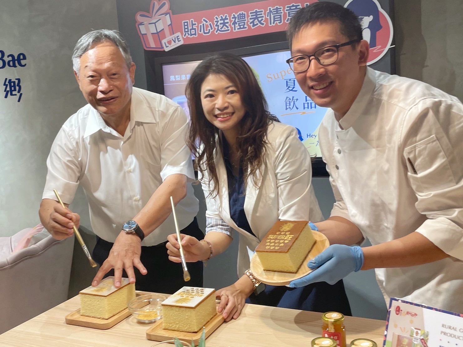 而這回的推廣活動所用的鳳梨,是由台南市玉井聯興青果生產合作社、屏東縣龍潭果菜生產合作社等大型農社企聯手供應,讓更多人可以品嚐到選用國產鳳梨做出各式美味伴手禮。