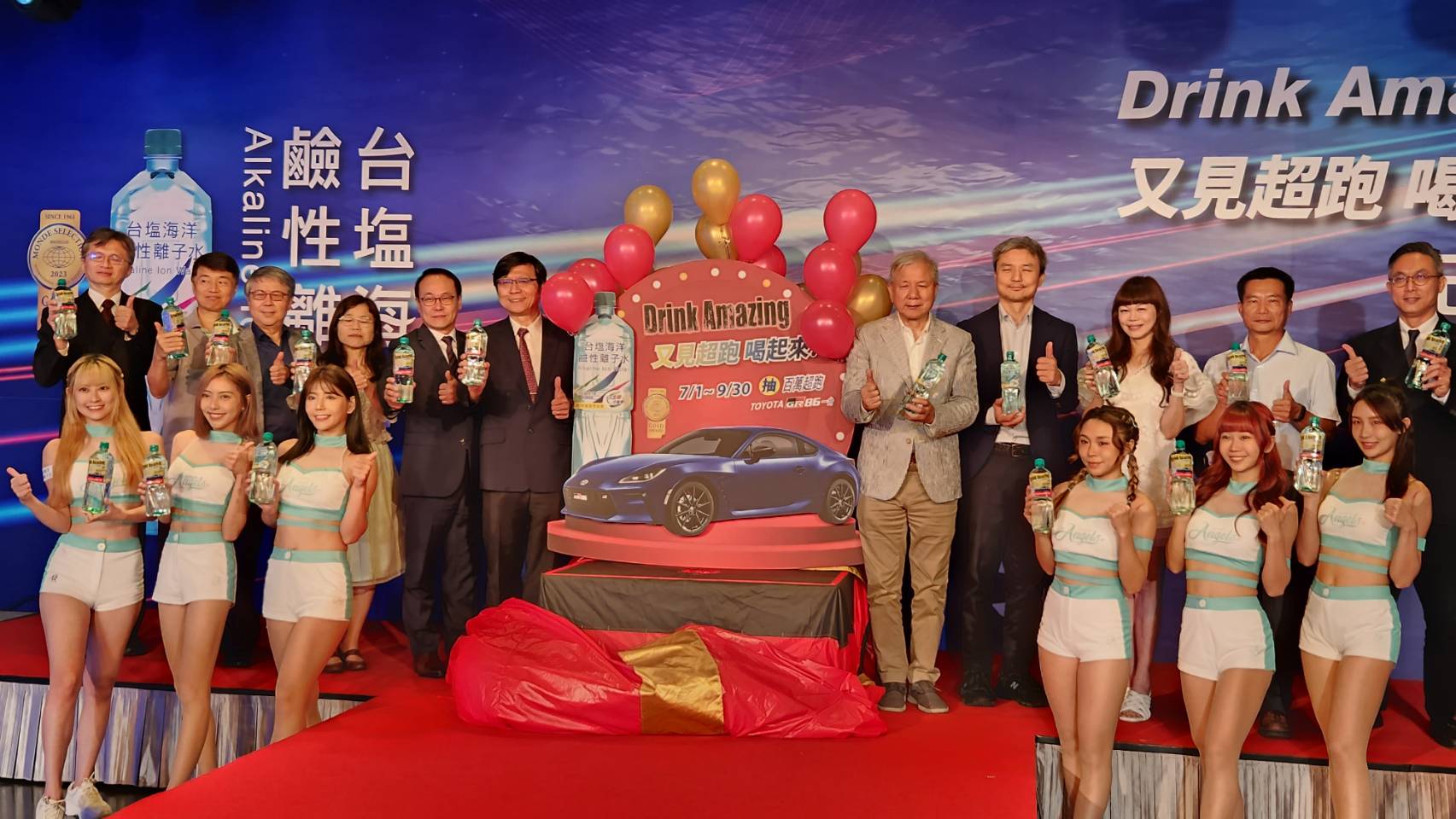 陳世輝並宣布加碼再抽人氣超跑TOYOTA GR86一台,七月一日起,「台塩海洋鹼性離子水」再舉辦「Drink Amazing又見超跑 喝起來」活動。