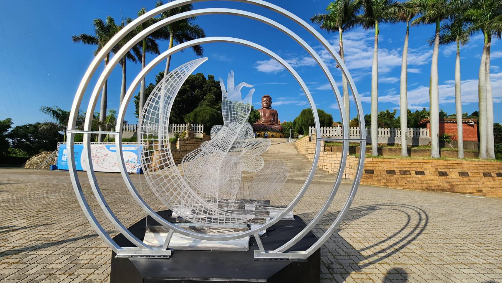 而一提起八卦山的釋迦牟尼大佛,根本就是彰化的地標之一,因此,就有四件裝置藝術就在八卦山周邊,蔡致偉說,位於大佛前廣場的《蓮印禪心》,由有電互動團體創作,作品以佛手印配合燈光的呼吸,去創造如佛祖關愛生命的溫暖光輝,且不管是從正面看大佛,或是從背面看向彰化,可圈住夕陽的設計,另夜晚所散發的色彩,另有風采。