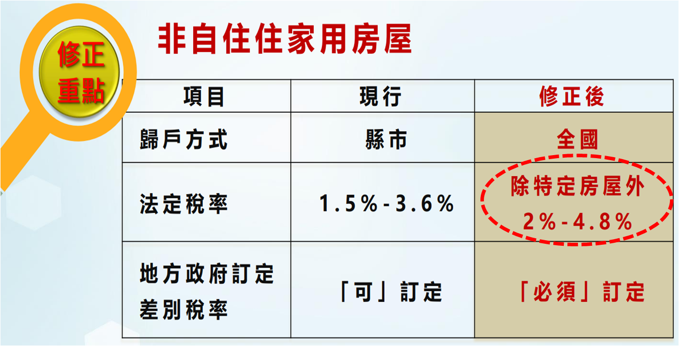 二、囤房稅改採全國總歸戶,稅率2%至4.8%