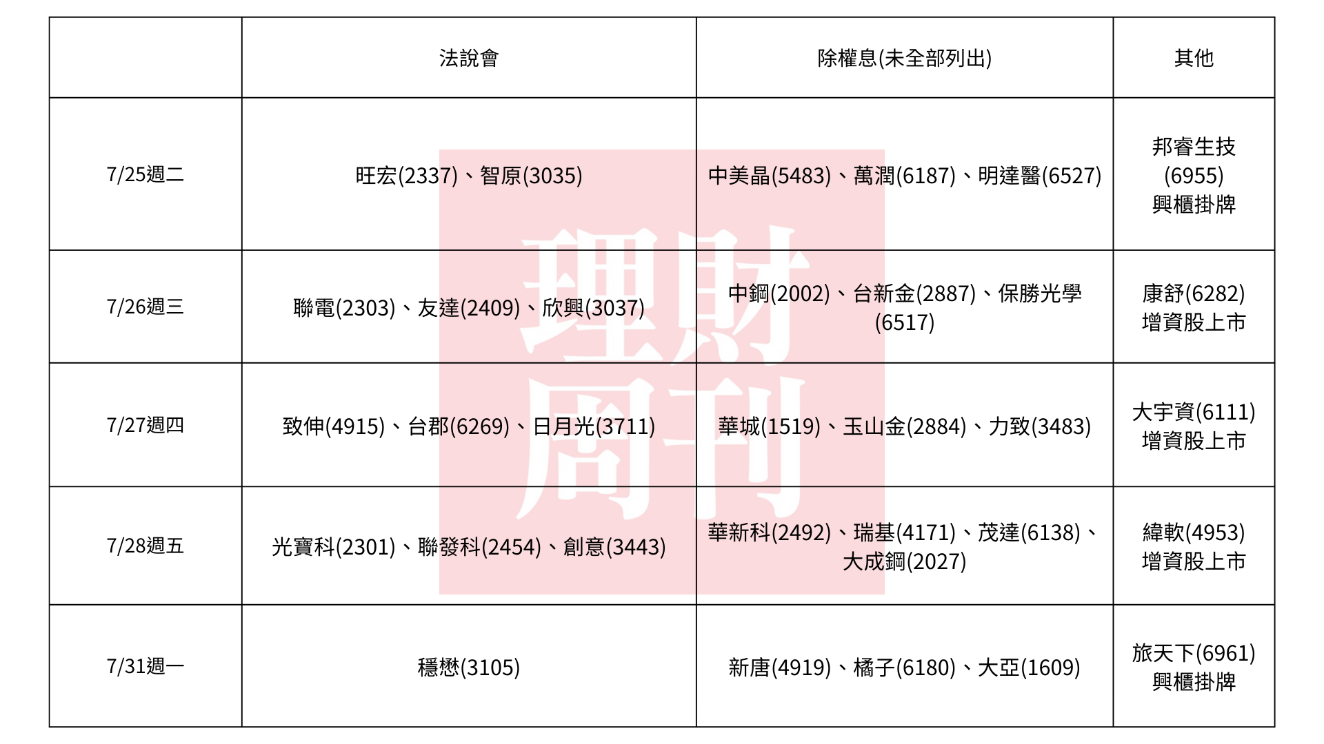 本週可關注三家個股