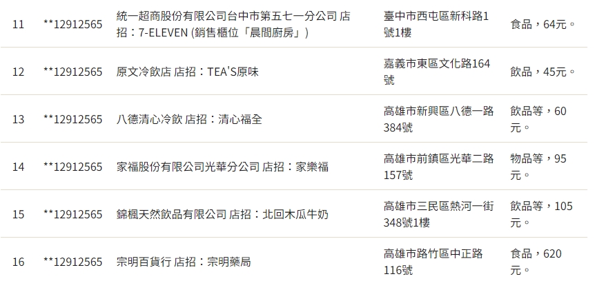 5-6月千萬特別獎最低中獎金額為15元,地點在新竹縣湖口鄉明德街43號1樓萊爾富,商品項目為傳真費;而百萬頭獎最低中獎金額為為20元,地點在桃園市八德區福德一路54號1樓的7-11,商品項目為食品,領獎期間自112年08月06日起至112年11月06日止。