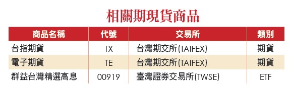 操作面來看,若將台股大盤走勢分為大漲、大跌與盤整,三種波段趨勢,從現在至景氣高點出現前,若我們先排除掉如同2022年那樣的大跌機會,那麼行情操作只剩下盤整和大漲交替出現的可能。而我們的操作就可以提高這兩種盤型的勝率為主軸布局。在這樣的操作邏輯前提下,若是波段操作者,可以制定拉回買進的操作模式,若是長期投資者,則可以定期定額的操作模式參與市場,而喜愛高股息的族群如國民ETF的00919、00878、0056等也可以持續參與市場,因為不論配息的方式如何,只要股市仍呈現多頭格局,ETF填息機率相對是高的。