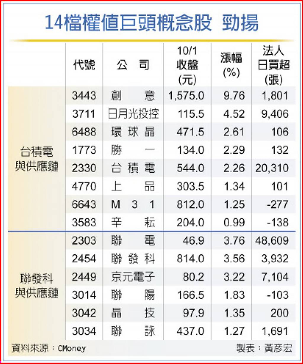 聯邦投信投資長吳裕良指出,大盤11日勁揚主要反應台積電ADR周二反彈1.82%,帶動台積電與相關供應鏈上漲,台積電11日跳空開高靠攏半年線、尾盤爆大量7,961張買入,終場收在544元上漲2.26%,相關供應鏈受惠如創意直奔漲停、日月光也漲半根K線。