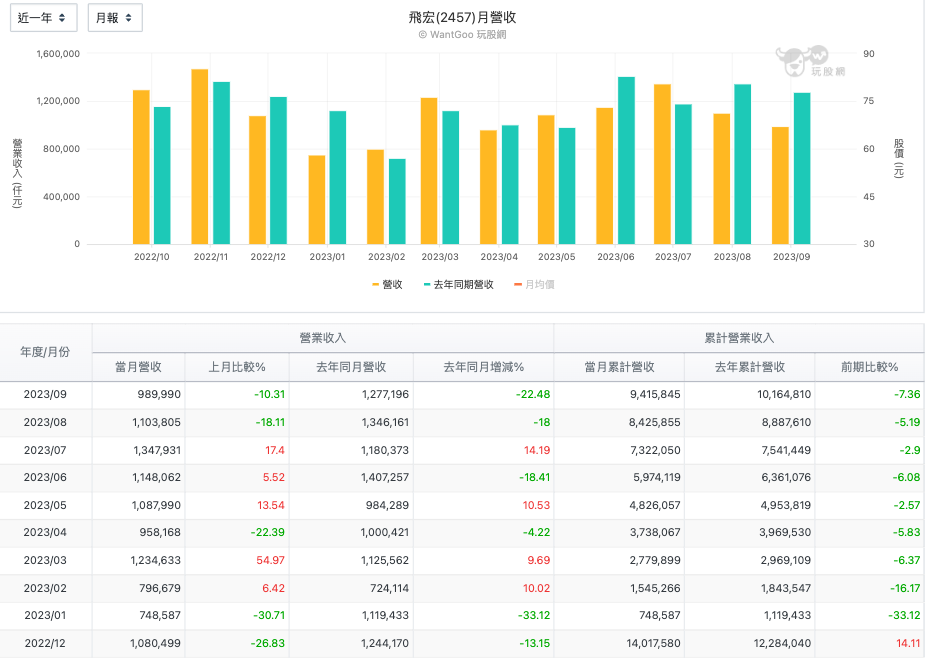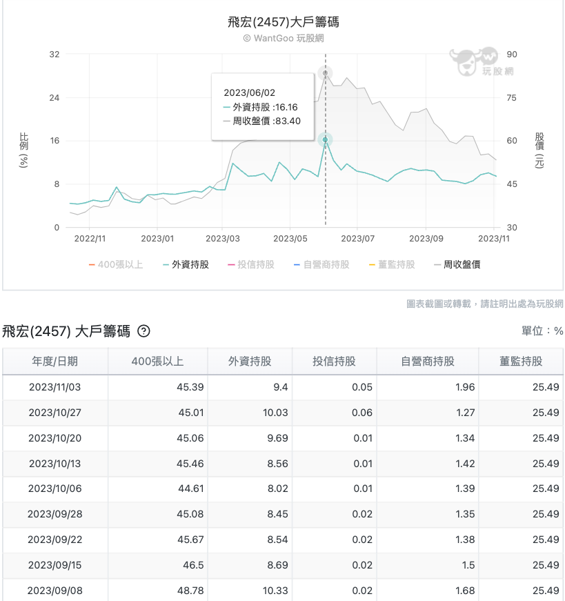 還記得2023年上半年電動車狂潮嗎?年初特斯拉股價還在100美元,結果上半年財報開出來非常優異,於是七月份更是創下今年最高價,盤中最高接近300美元,短短半年而已就飆上兩倍,比AI氣勢還猛,於是全球電動車、充電樁供應鏈也跟著吃香喝辣,其中一家就是充電樁受惠股飛宏,這是本文的主角,當時股價也跟著衝到85元,但下半年隨著特斯拉財報轉弱,還有降價利空消息不斷飛出,特斯拉前陣子回檔到200元,於是飛宏就跟著軟趴趴。恰逢現增剛結束,公司派依然有大量資金需求,充電樁事業還在衝刺擴張中,但這次現增價已經不到50元,對比前高的80元已經殺了30元,波段跌幅接近四成,到底最新狀況如何?接下來我將切成兩個部分,一個是股票現況追蹤,另一個部分則是營運追蹤,正常文章不會這樣搞,因為實在太大費周章,通常就是說說盤中股價或技術面而已,但這樣沒有深度研究找原因,怎麼下跌也搞不清楚對吧?所以我要從專業投資人的角度,細部全面檢視一番。