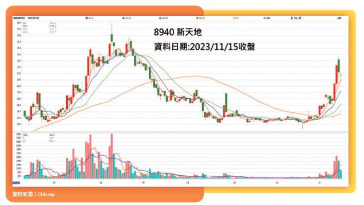 新天地(8940)十月營收為1.58億元,年增61.82%。一至十月累計營收為11.79億元,年增70.33%。十月營收為年月雙增。新天地受惠疫情後市場復甦,帶動宴會廳接單暢旺,在第二、三季淡季不淡外,來到第四季傳統旺季,營運可望再創高。前三季EPS為0.71元。