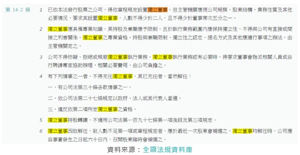 - 「公開發行公司獨立董事設置及應遵循事項辦法」,全國法規資料庫。