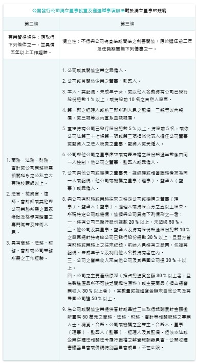 正如其名,「獨立董事」強調其獨立性。按照我國證券交易法第 14 條的規範,獨立董事應該: