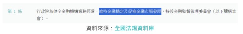 - 「金融監督管理委員會組織法」,全國法規資料庫。