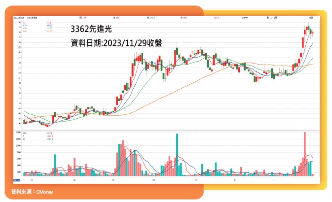 先進光(3362)十月營收為3.75億元,年增21.35%,十月營收為年月雙增。一至十月累計營收為33.25億元,年增6.29%。從單月營收來看,七至十月皆為年月雙增。前三季營收為29.5億元,累計EPS達2.19元。