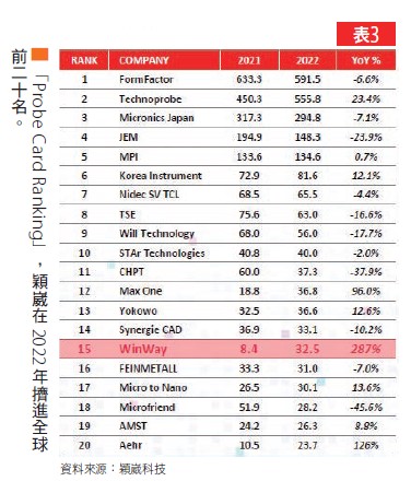 「Probe Card」去(2022)年有一個非常高的成長性,擠進了前二十。