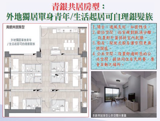 3.社會福利設施─集合托嬰中心、社會服務站、身心障礙措施,將社會服務導入社宅中。