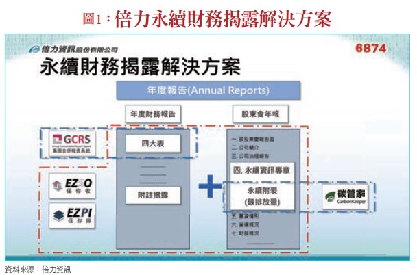 碳與財務資訊是關聯的,未來永續發展,這些風險與機會和財報連動的機會越來越大。倍力自信具備這樣的專業,可以協助企業客戶有關碳、財報相關的處理(見圖一)。