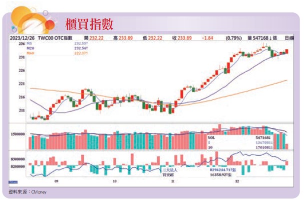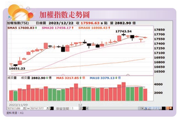 2023年倒數第二週的行情橫盤震盪,但整體多頭架構還是相當完整,月線形成有效下檔支撐,不過外資去放聖誕節假期之後,成交量能會明顯縮小,取而代之的將會是內資主力的資金來接棒。