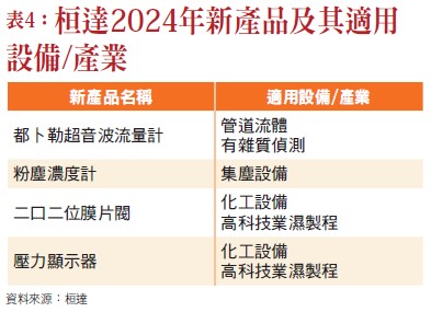 桓達2024年推出新產品及其適用的設備、產業如表四。這些新產品加入2024年產品線,可望提高營收動能。