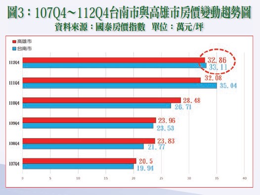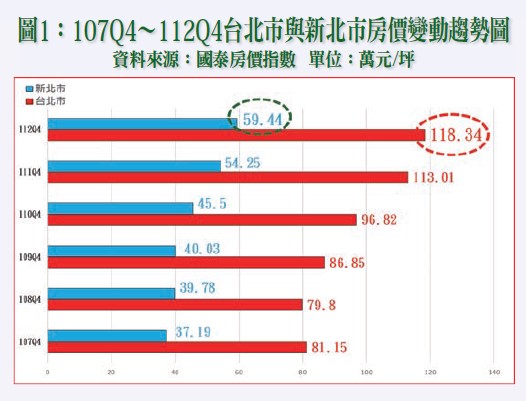 近年全國房價大幅上漲,尤其根據國泰房價指數數據,107Q4~112Q4全國房價漲幅高達82.84%,並且112Q4與107Q4相較,漲幅亦高達3.09%,有關107Q4~112Q4六都房價變動趨勢詳請參閱附圖一~三。