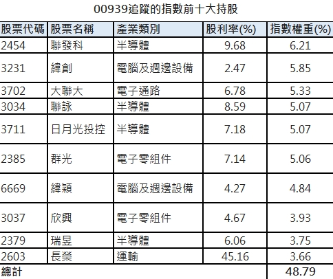 00939追蹤的指數篩選母體是上市櫃發行市值及自由流通市值前250大企業,採樣範圍適中,核心選股邏輯是透過每股盈餘、營業利益率、股利率等三指標,篩選出「公司要賺錢、經營有效率、高股息標的」之基本面獲利穩健、股利率名列前茅的優質企業,且不侷限在單一產業,只要是符合篩選指標,各產業高息標的統統入列,單一持股上限8%。此策略反映在股利率表現相當亮眼,據歷史數據模擬回測,指數近5年平均股利率達9.85%。
