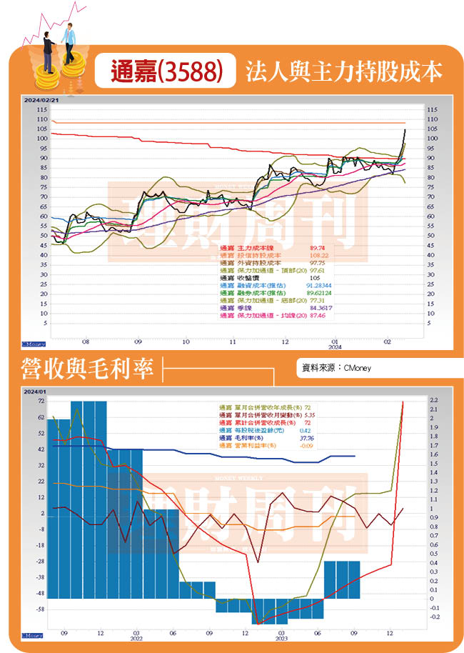 台灣電源管理IC(營收占比100.00%)專業廠通嘉(3588),公布1月營收1.12億元,月增率5.35%,年增率多達72.00%。
