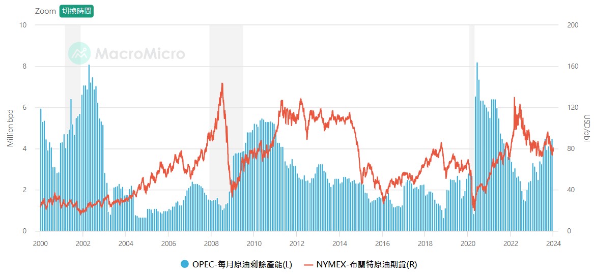 ▲OPEC庫存量與布蘭特期貨,資料來源:財經M平方